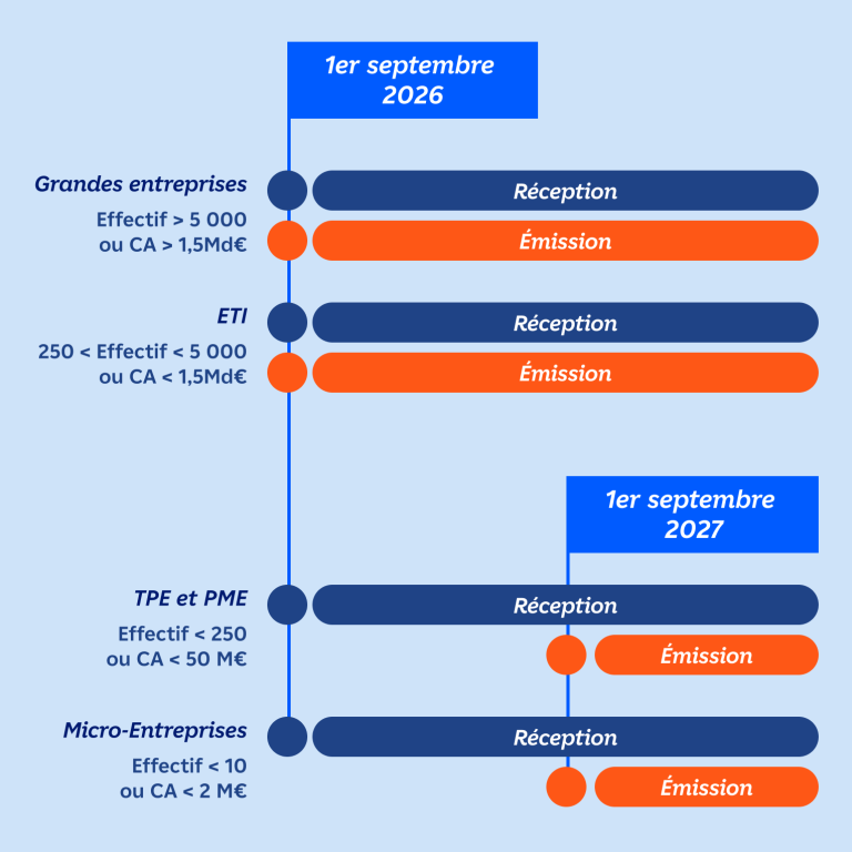 - Au 1er septembre 2026, toutes les entreprises et collectivités doivent être capables de recevoir des factures électroniques.